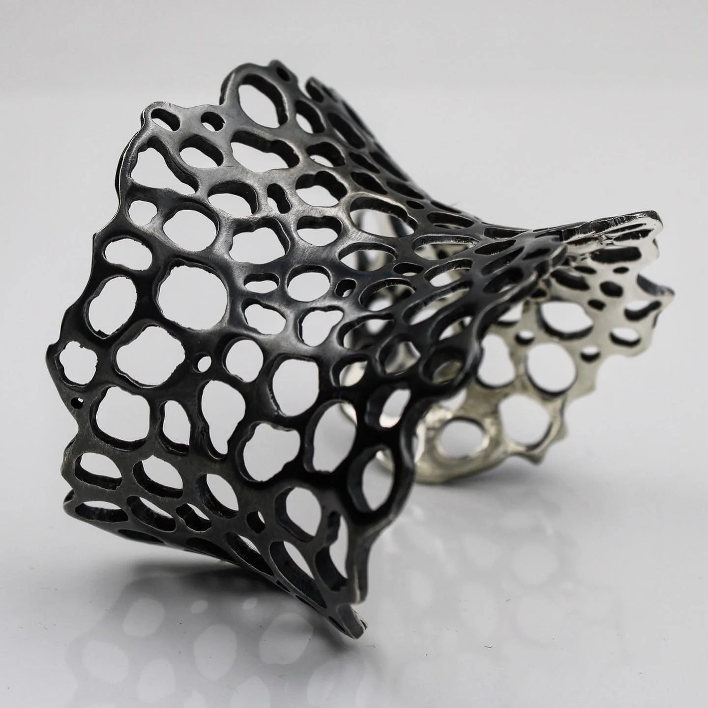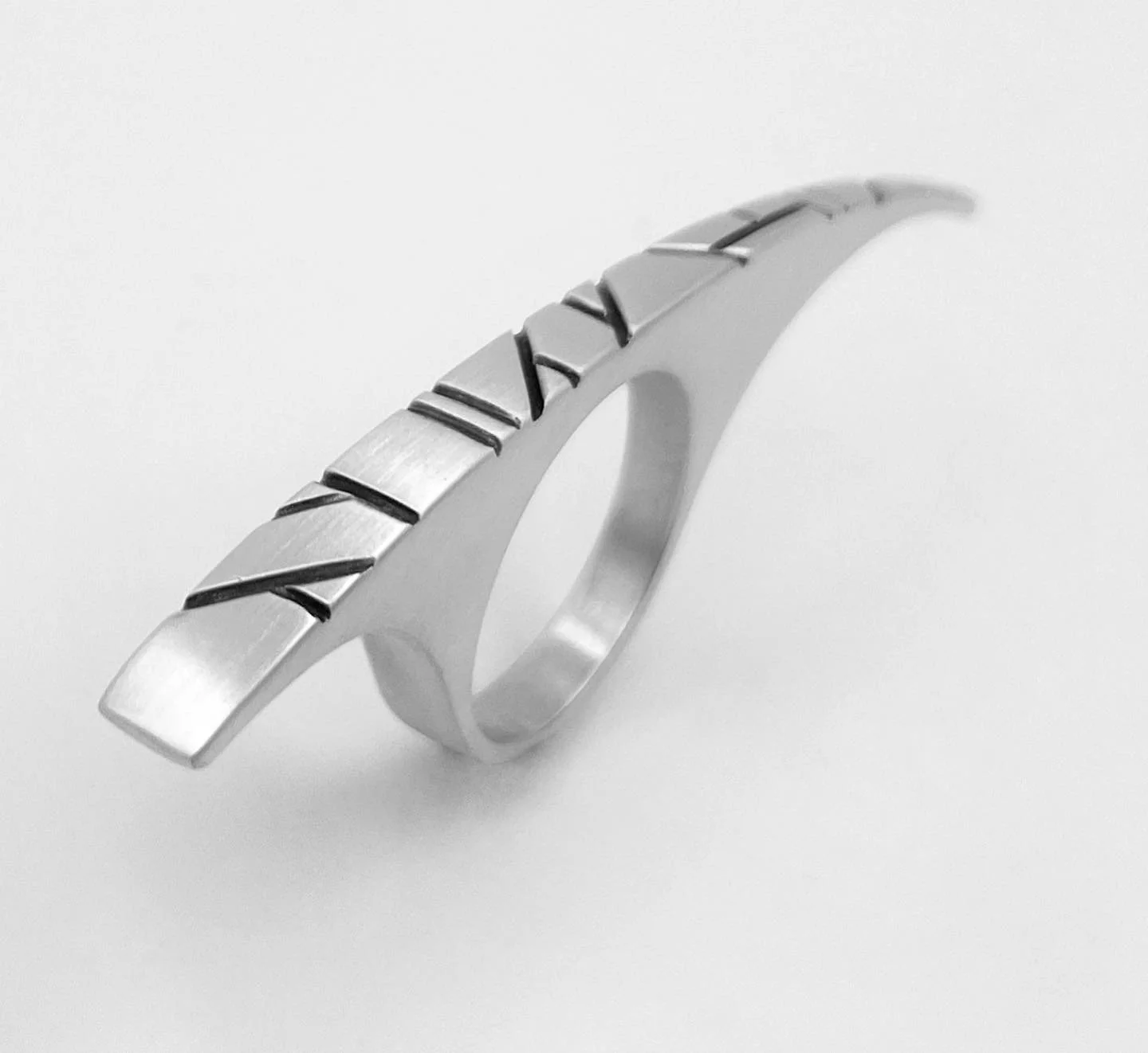 Matagi Sorensen is a contemporary artist who creates hand-fabricated jewelry and small metal sculptures based on his relationship to the environment in which he was raised. Matagi is a citizen of the Yavapai-Apache Nation from Camp Verde, Arizona. Matagi’s creative practice began at an early age; he was raised in an environment where he learned to work with his hands, sourcing materials from the land. His experimental designs are sleek and modern, although the inspiration is drawn from the natural environment and concepts of recycling, necessity, culture, utility, and sustainability, all of which are rooted in his Yavapai Apache heritage.